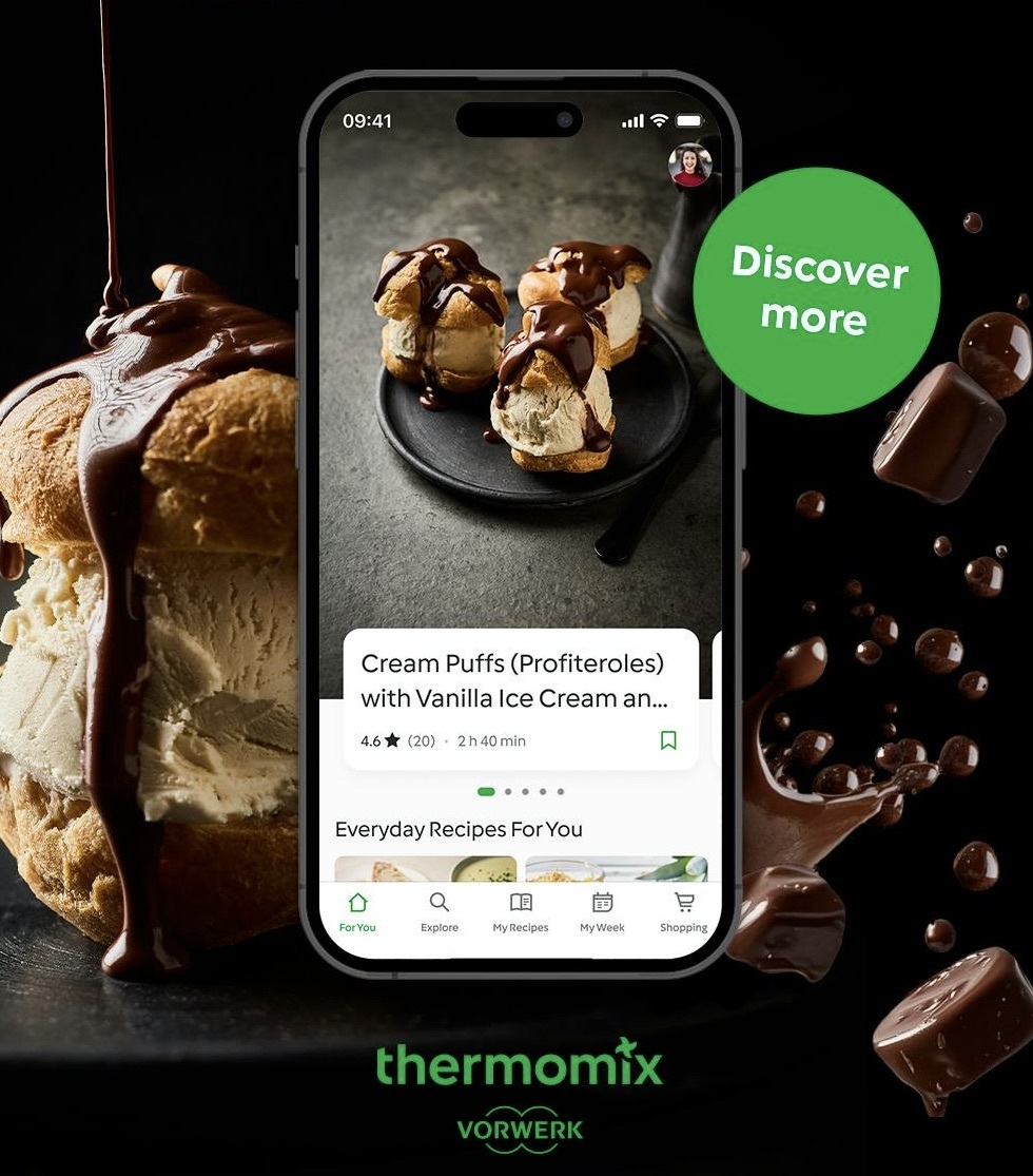 But that’s just the start. With Cookidoo, the built-in recipe platform, you’ll have thousands of guided recipes at your fingertips — from quick weekday dinners to show-stopping desserts. Simply choose a recipe, follow the on-screen steps, and let Thermomix® do the hard work for you.