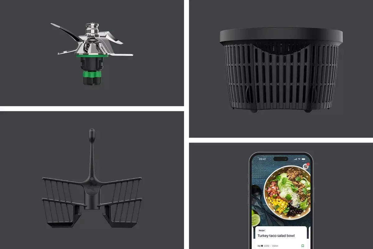 Mixing Bowl – Precision-engineered stainless steel with built-in heating and weighing functions.